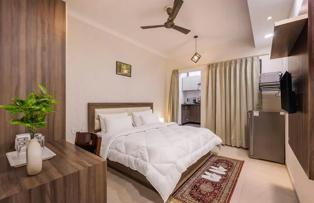 ベッドルーム1室のEco-Friendly Luxury Awaits You With Garden グルガウンアパートはタウ・デヴィ・ラル・スタジアムから2.5キロメートルに位置し、庭園の景色を一望できます。 ビジネスとレジャーの両方の目的でWiFiを利用できます。